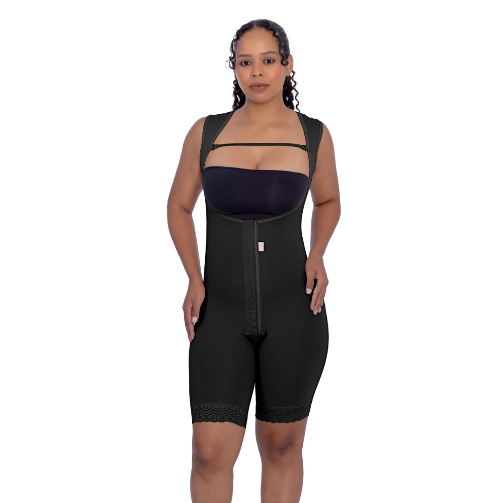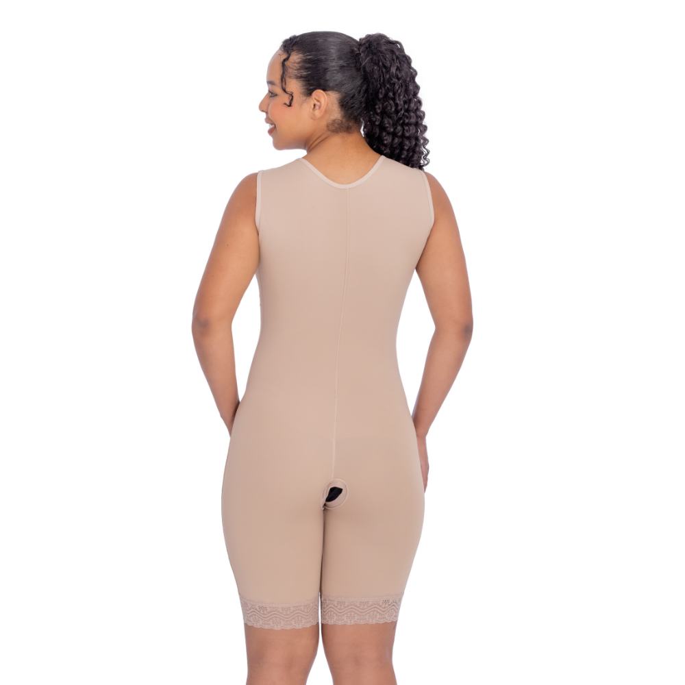 Modelador sem busto integrado, com pernas, fecho em colchetes duas regulagens e com alças modelo regata, confeccionado em tecido Confort de alta compressão para garantir sustentação, conforto e segurança durante o uso diário e no pós-operatório.