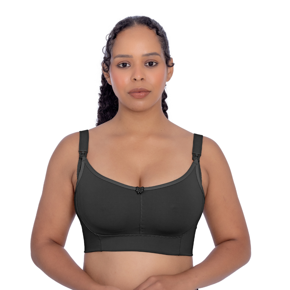 O busto pré-moldado proporciona caimento natural e elegante, enquanto o suporte em L reforça a sustentação. Conta com abertura prática para facilitar a amamentação, alças ajustáveis e colchetes resistentes.